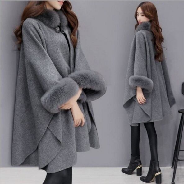 このケープコートは、シンプルながらもアシンメトリーなデザインが特徴で、どんなスタイルにもマッチします。オフィスやデート、お出かけのシーンにも最適で、トレンド感を演出します。前開きのデザインで着脱も簡単!中厚手の生地感が秋冬の防寒にも重宝します。首元、袖口にあしらったファーが高級感漂う1枚です。普段使いや旅行、女子会にも活躍すること間違いなしです。