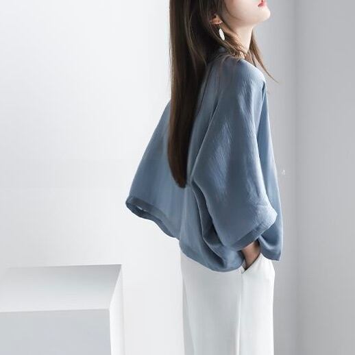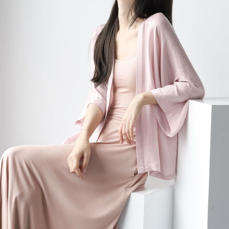 軽やかな7分袖カーディガンで季節を先取りした上品なコーディネート。