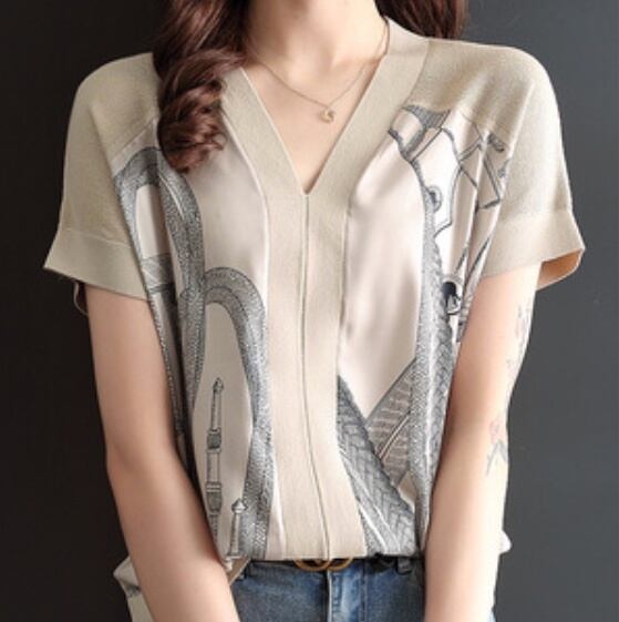 異国風デザインが際立つ個性あふれるVネックTシャツ。