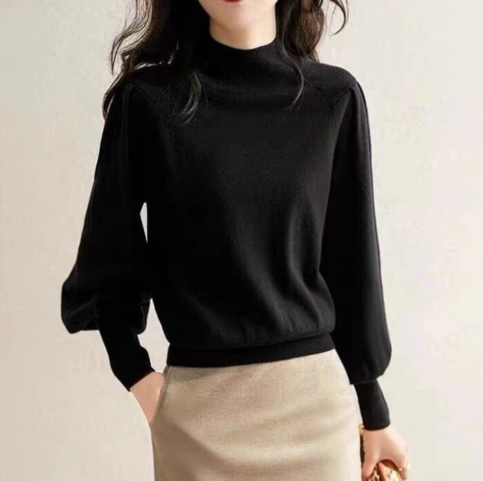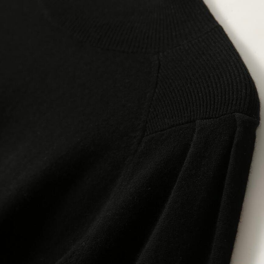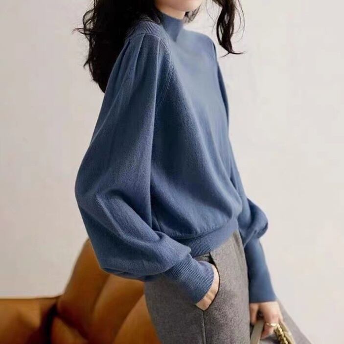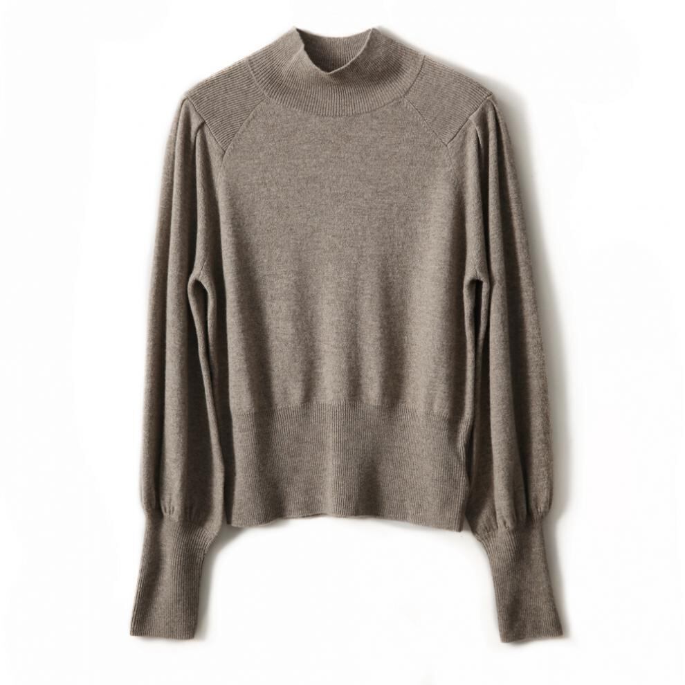 ふんわりボリューム袖が魅力の大人可愛いハイネックニット。