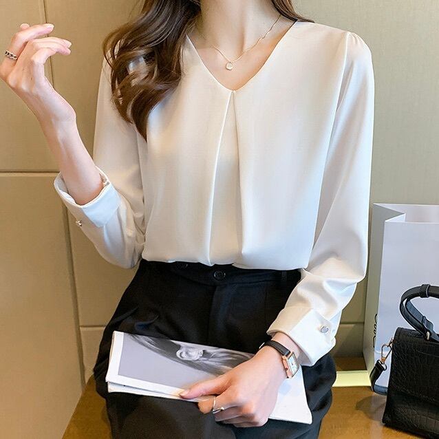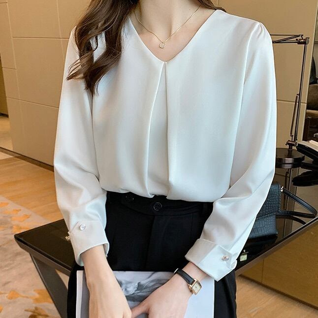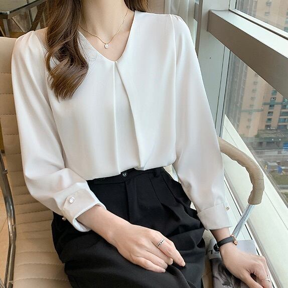 上品なタックプリーツが映える大人フェミニンなブラウス。