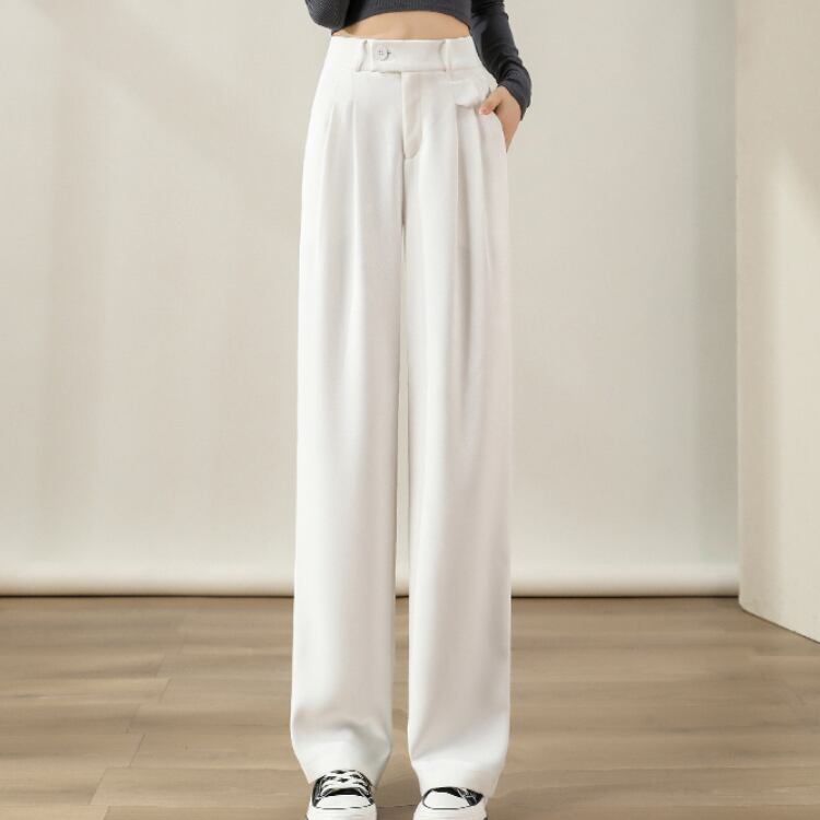 キレイなシルエットが魅力のスラックスワイドレッグパンツです
