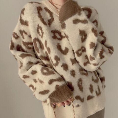 ヒョウ柄が大人可愛くもクールな印象のニット。