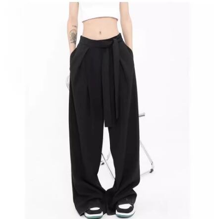 ハイウエストで脚長効果があり、裾ワイドのデザインが脚を美しく見せてくれます。