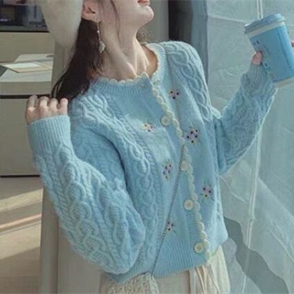 シンプルでありながら、おしゃれで存在感のある長袖クルーネックカーディガンです。