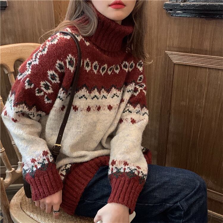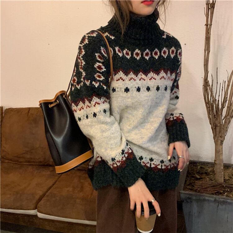 大人可愛い雰囲気を演出する、長袖ラウンドネックのプルオーバーセーターです。