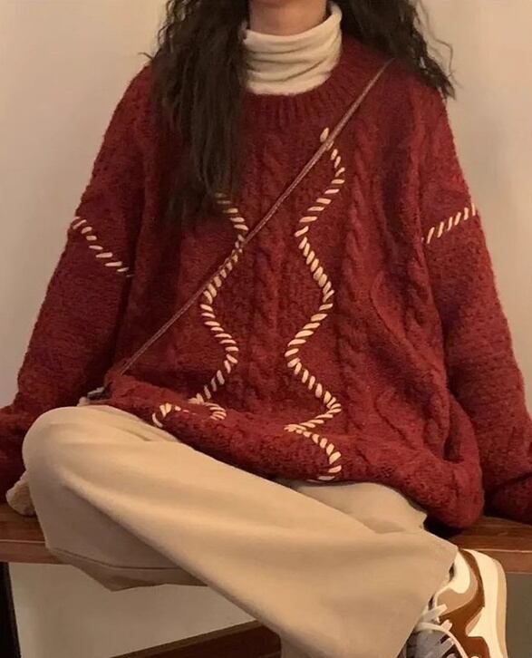 おしゃれさとカジュアルさを兼ね備えた、長袖ラウンドネックのプルオーバーセーターです。