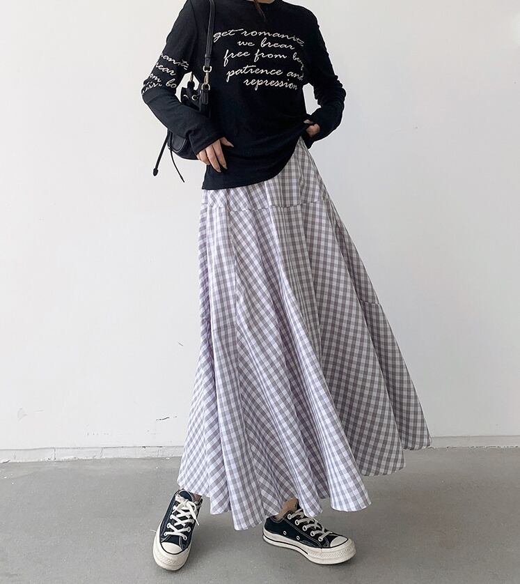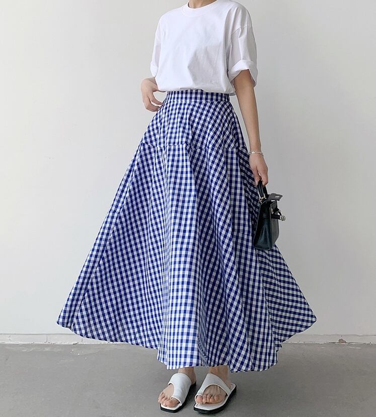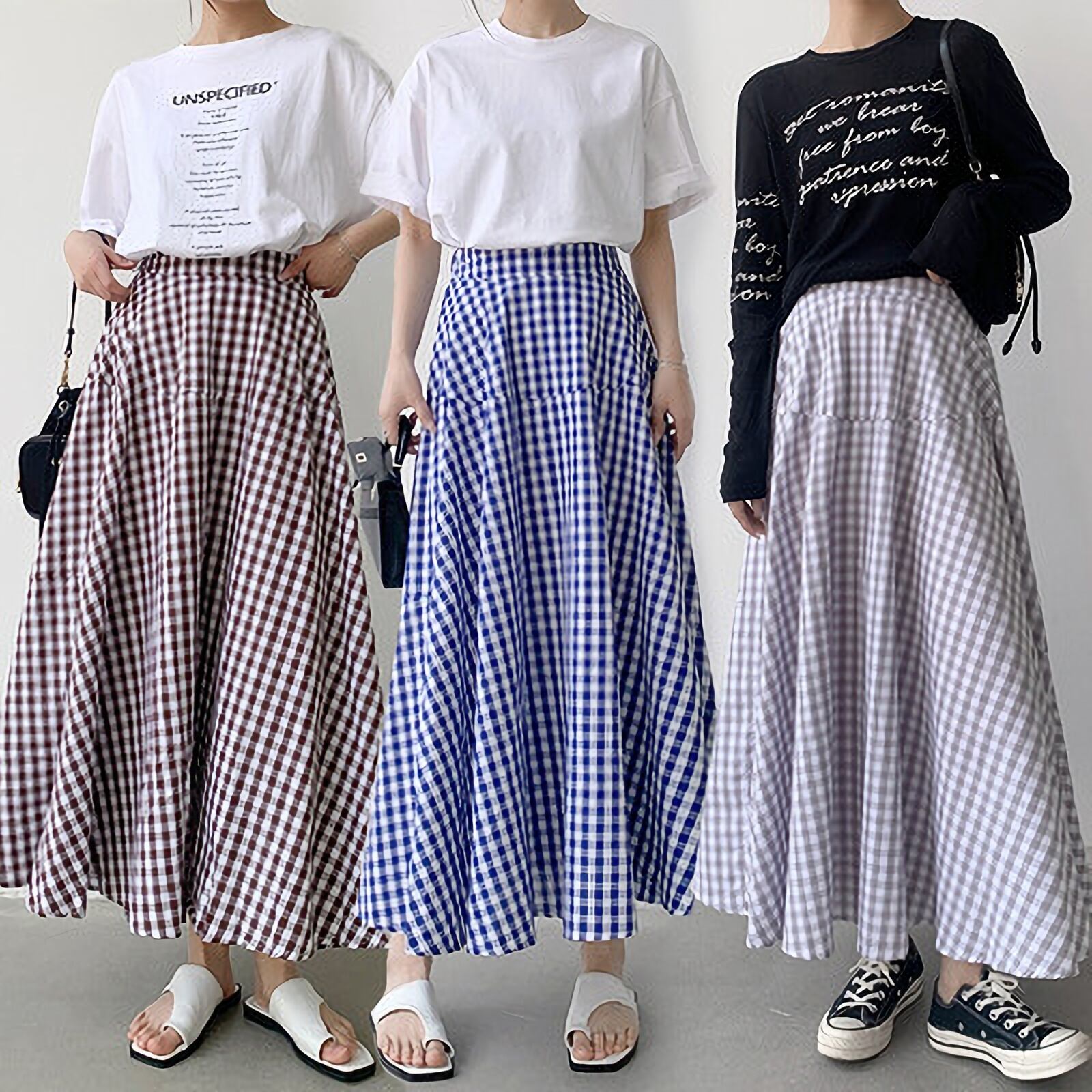 女性らしい優雅さを引き立てるチェック柄フレアスカート。