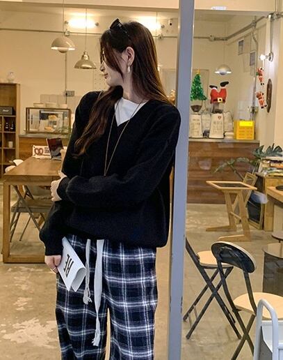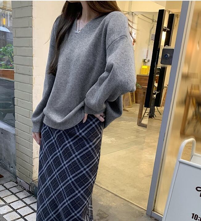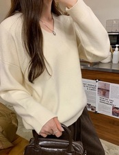 長袖のVネックデザインは、女性らしいシルエットを引き立てつつ、萌え袖が可愛らしさをプラスします。