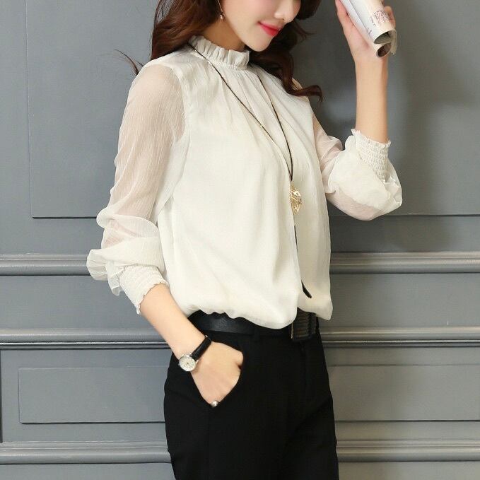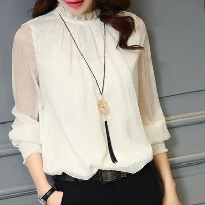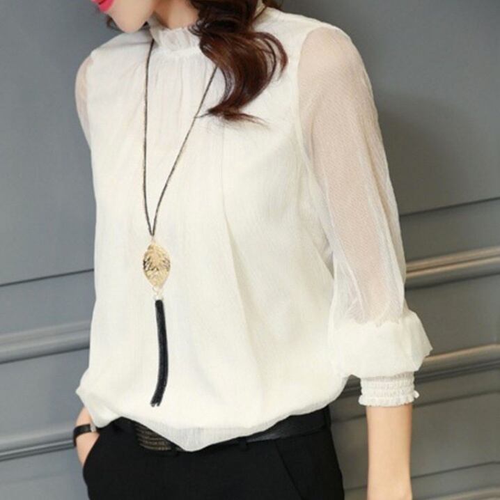 透け感×フリル襟の上品デザインでフェミニンにも大人可愛くも自在に。