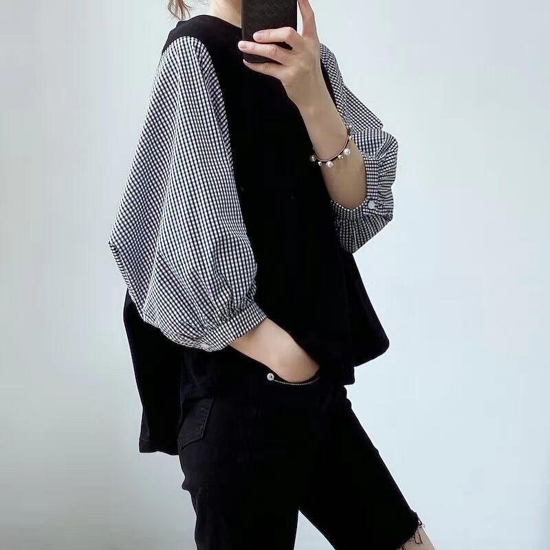 ボリューム袖とチェックやストライプ柄がこなれ感をプラス。