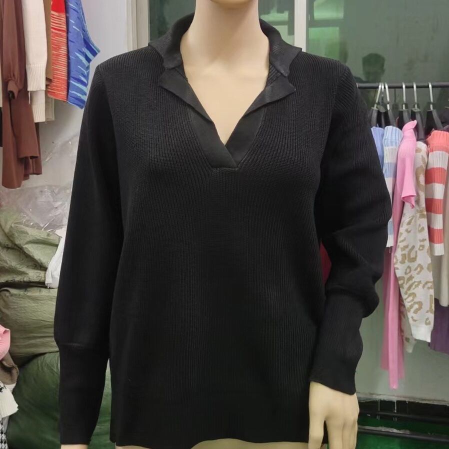 エレガントなポロカラーの長袖セーターは、シンプルながらも存在感のある一品です。