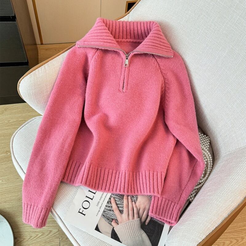 柔らかなニット素材で、暖かみのある長袖デザイン。