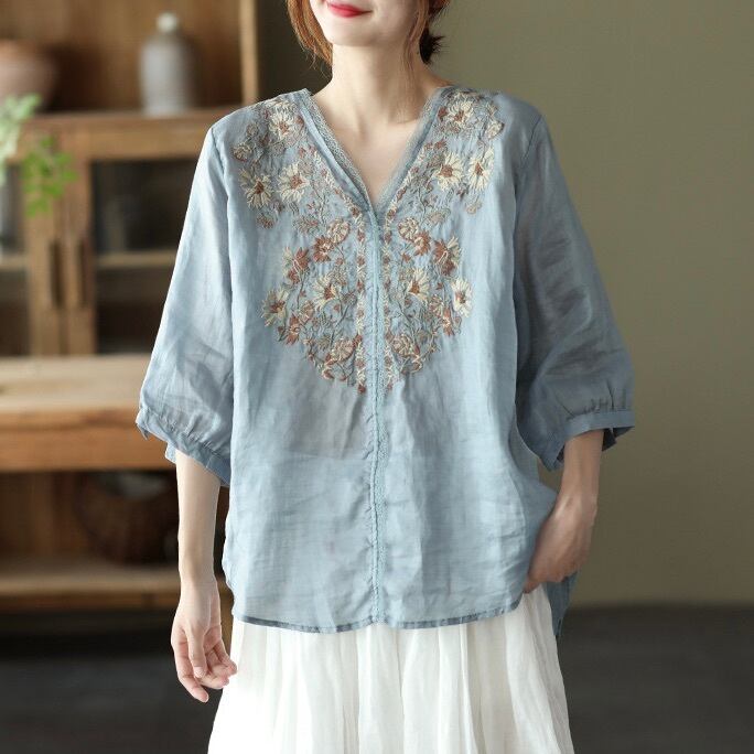 繊細な刺繍が魅せるエキゾチックな大人のブラウス。