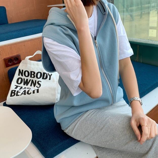 さらっと羽織れるノースリーブパーカーでこなれ感たっぷりのスタイルに。