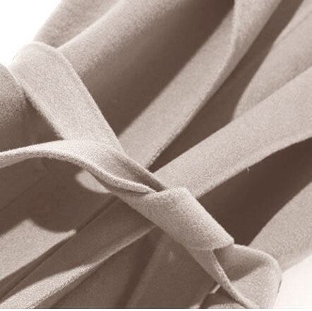 ウエストマークのベルトで美しいAラインを演出しエレガントな印象に。