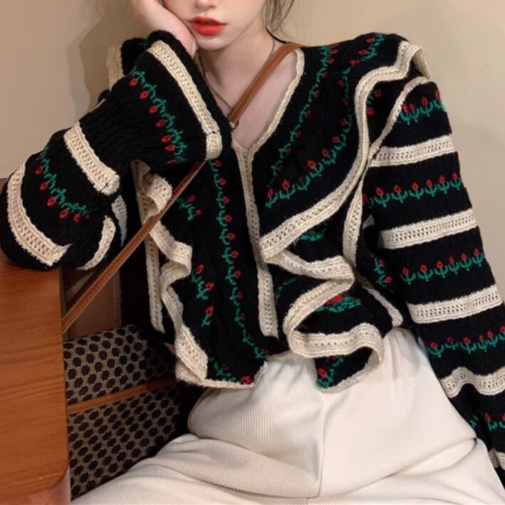萌袖とフリルディテールがかわいいニットプルオーバー