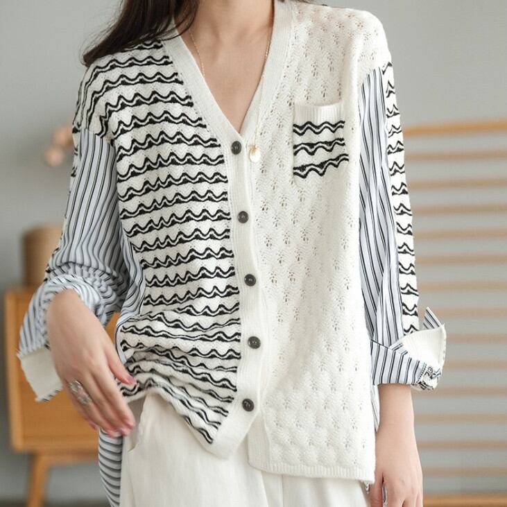 ニットとシャツのフェイクツーピーストップス