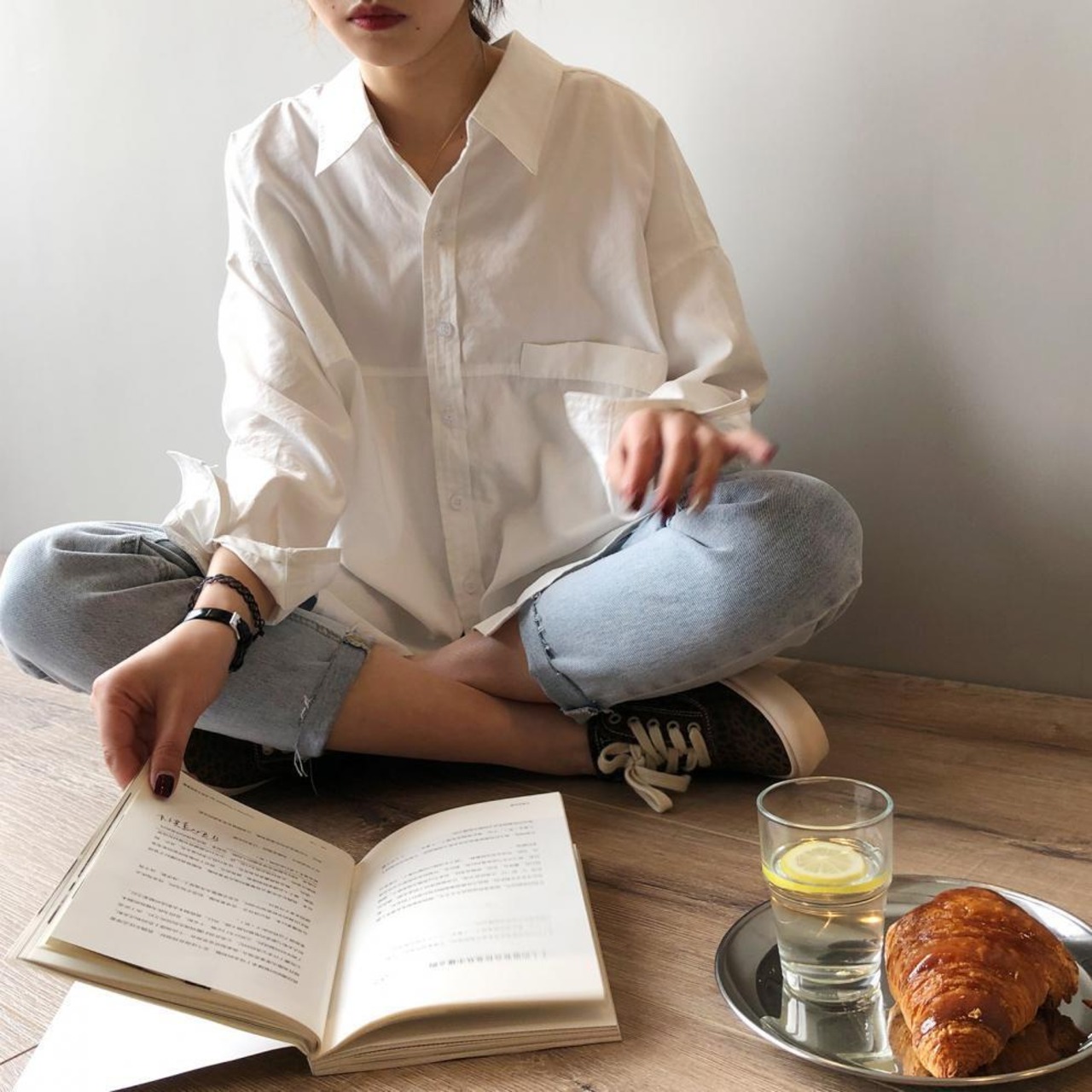 一般的なシンプルでありながら存在感のある、長袖襟付きシャツ。