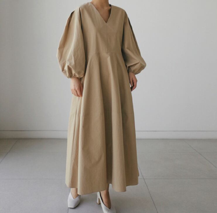 スカートもボリュームのあるAラインで体型カバーもできる一枚