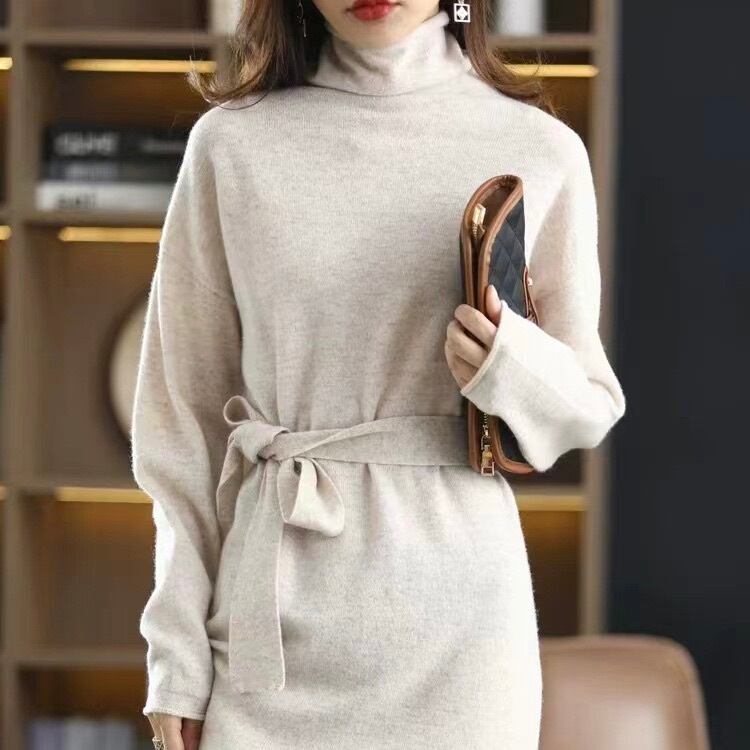 タイトシルエットが女性らしさを引き立てる上品なニットワンピース。