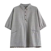 リラックスした雰囲気と大人可愛いスタイルを両立させた、5分袖の襟付きシャツです。