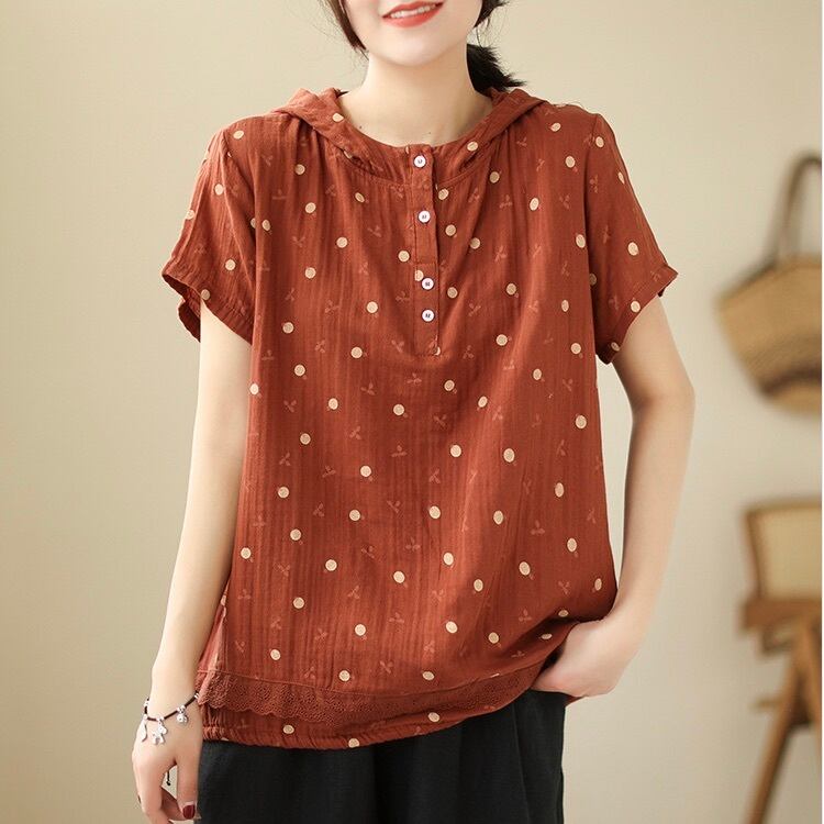 Vネックの抜け感とドット柄の可愛らしさでこなれた大人スタイルに。