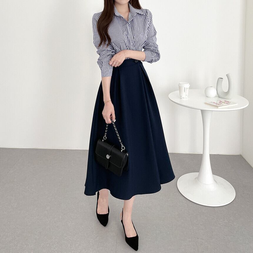 洗練されたデザインが魅力のミモレ丈ワンピースは、上品な襟付きの長袖仕様で、フォーマルからカジュアルまで幅広く活躍するアイテムです。