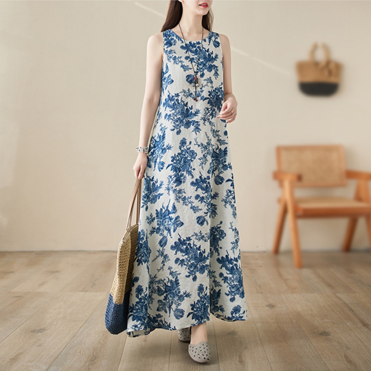フレアデザインが女性らしさを引き立て、軽やかなリネンコットン素材が心地よい着心地を実現しています。春から秋まで活躍するこのワンピースは、バイカラーのフラワーデザインが印象的で、カジュアルからきれいめスタイルまで幅広くコーディネート可能です!