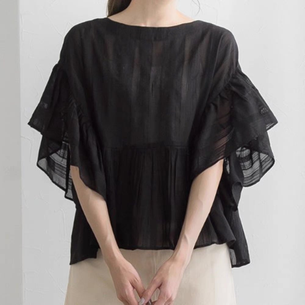 ふんわりフリル袖とハイウエストデザインで華やかさもこなれ感も叶える一枚。