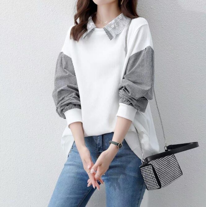 ボリューム袖とレースのアクセントで大人可愛い抜け感をプラス。