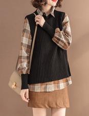 カジュアルながらも上品さを感じさせるデザインで、ポロカラーやボタンがアクセントに。フェミニンでありながら、シンプルさを保ったこなれ感のあるスタイルが魅力です!普通丈のシャツと、袖なしのニットベストはレイヤードスタイルにも最適で、着回し力抜群です。