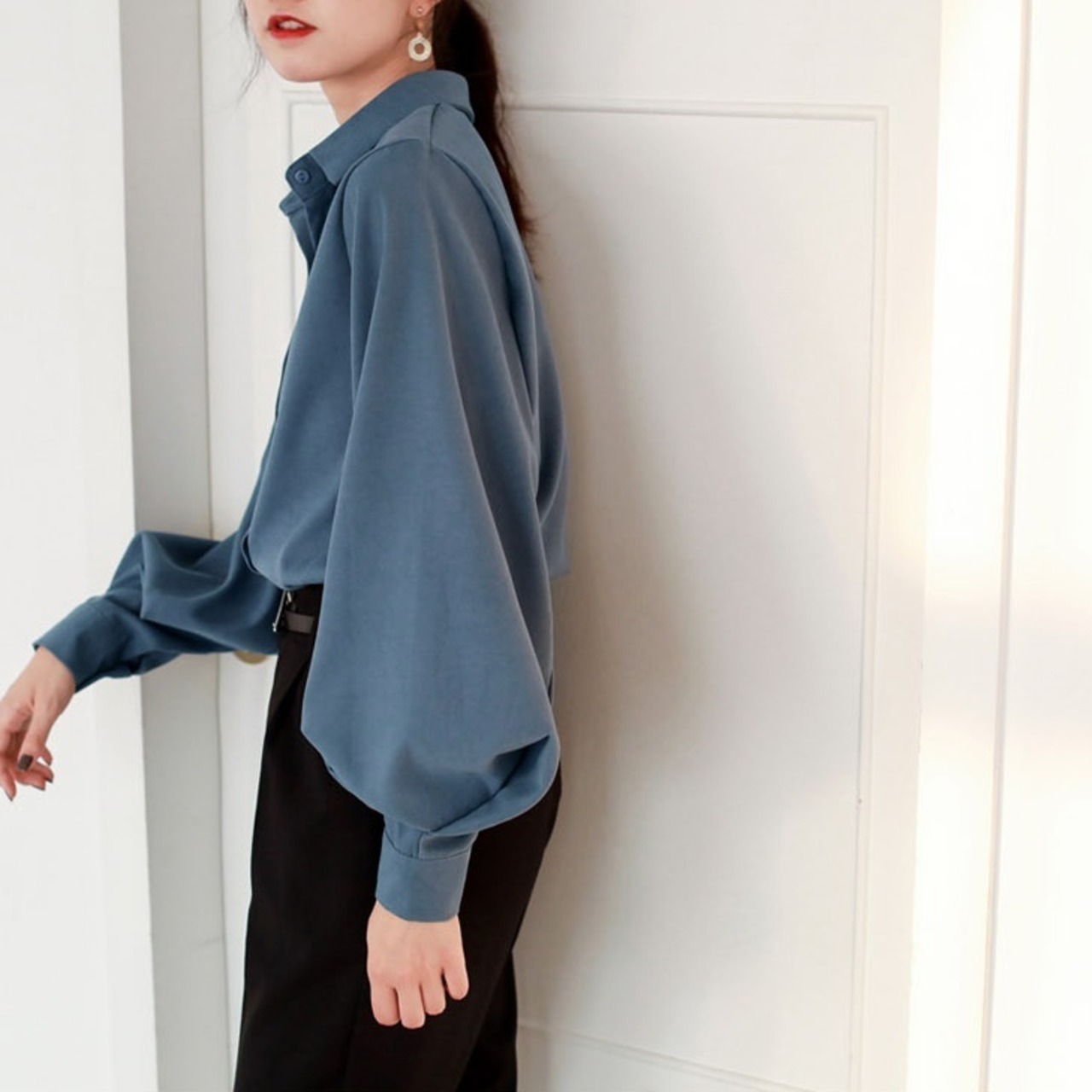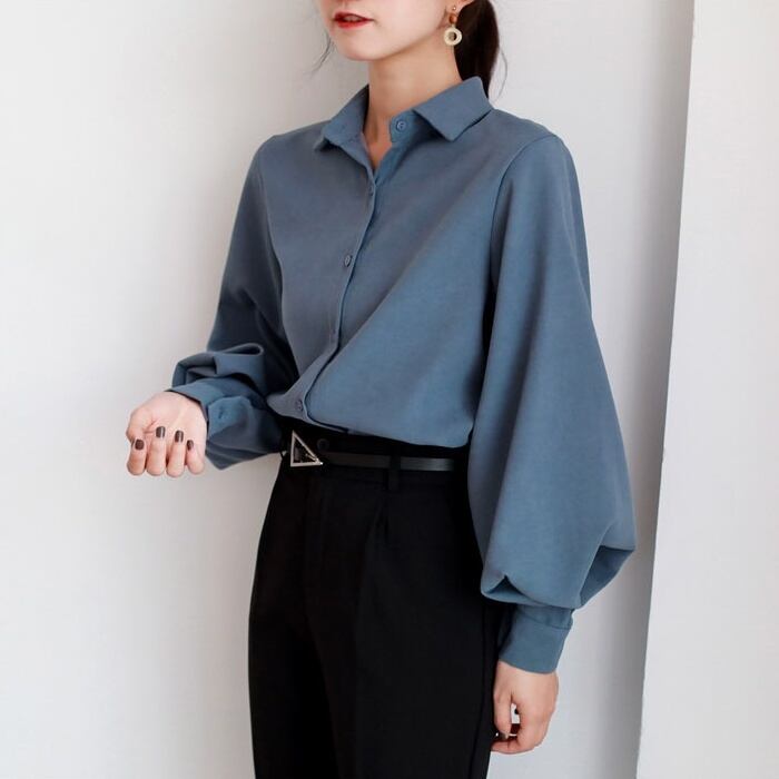 大人可愛い魅力を引き立てるランタンスリーブのシャツブラウス!