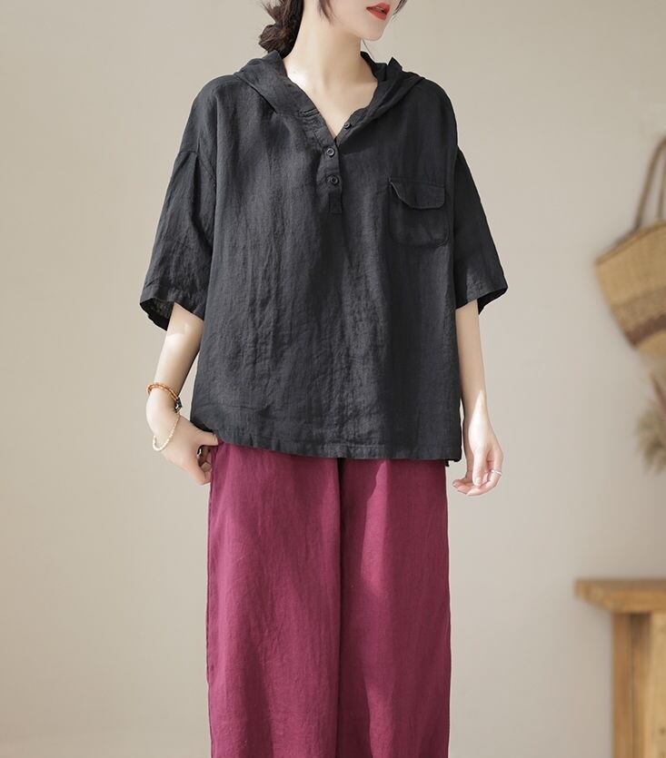 ハーフボタンと胸ポケットがアクセントになっており、カジュアルからきれいめスタイルまで幅広く活躍します。