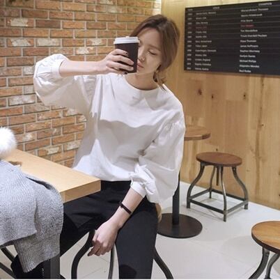 大人可愛い魅力の長袖ボリューム袖シャツ。