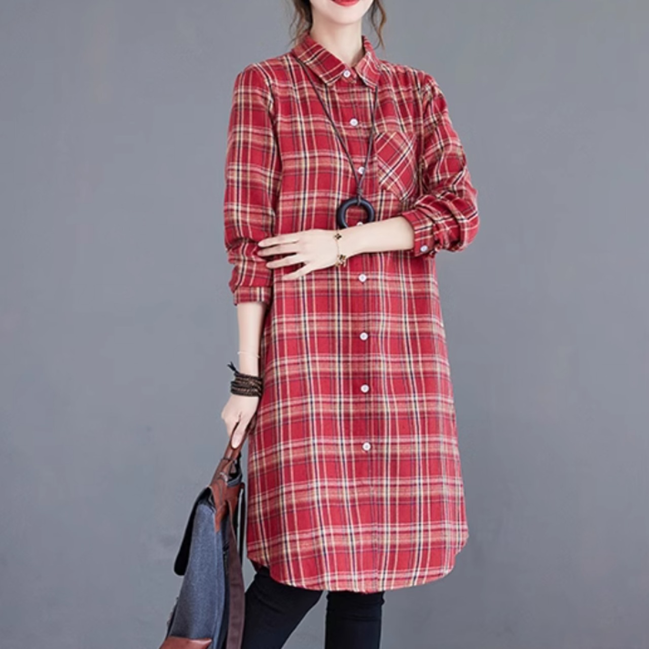 チェック柄がかわいいロング丈のシャツ
