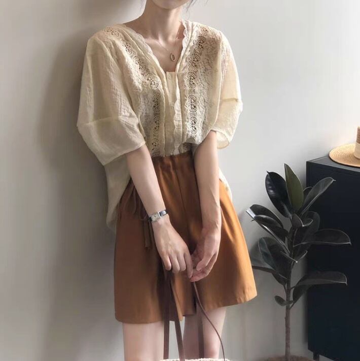 ふんわりパフ袖にレースやフリルを添えてロマンティックに仕上げた春夏ブラウス。