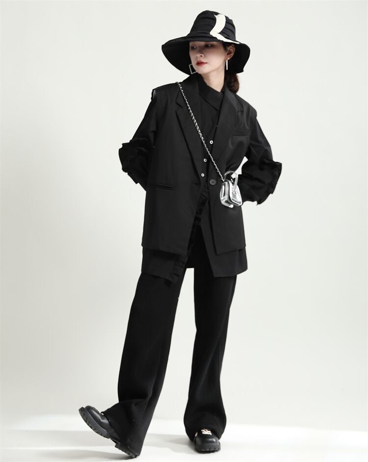 アシンメトリーなデザインが個性的で、袖コンシャス仕様で着用することでおしゃれさと存在感を引き立てます。