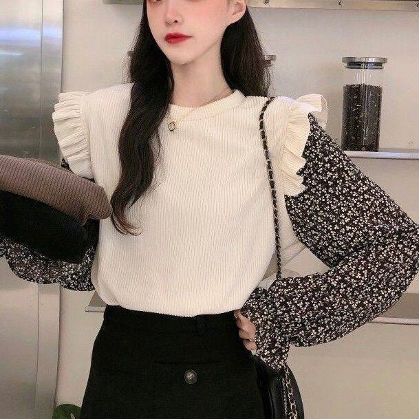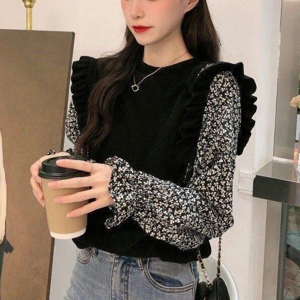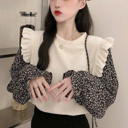 フリル袖と花柄のニュアンスが大人可愛いをぐっと格上げ。
