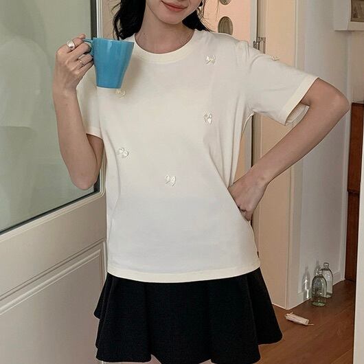 ふんわり揺れる立体リボンが視線を惹きつけるロマンティックな一枚。