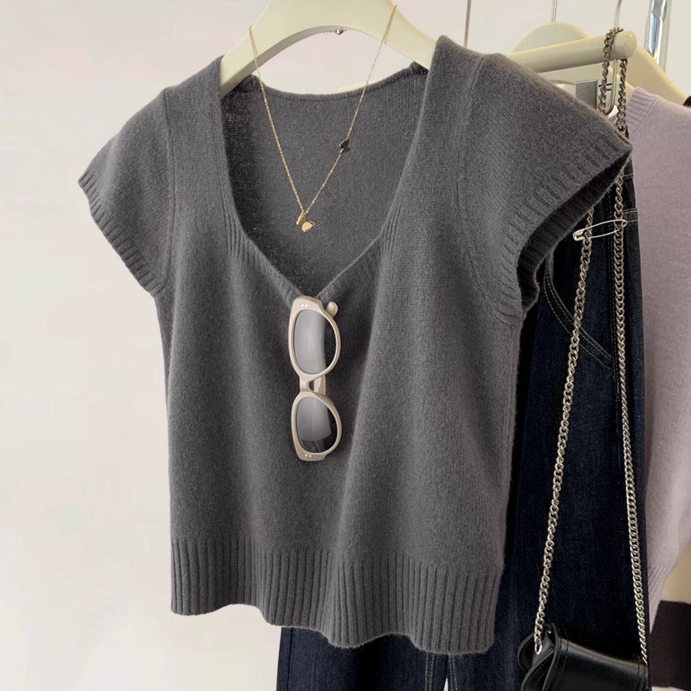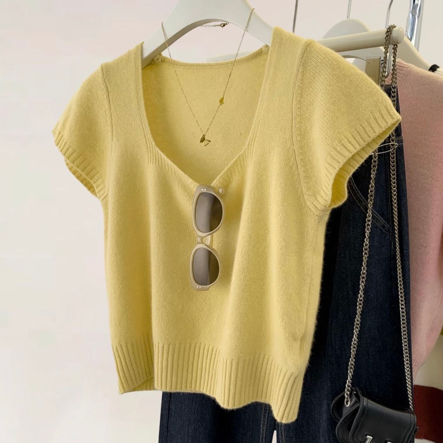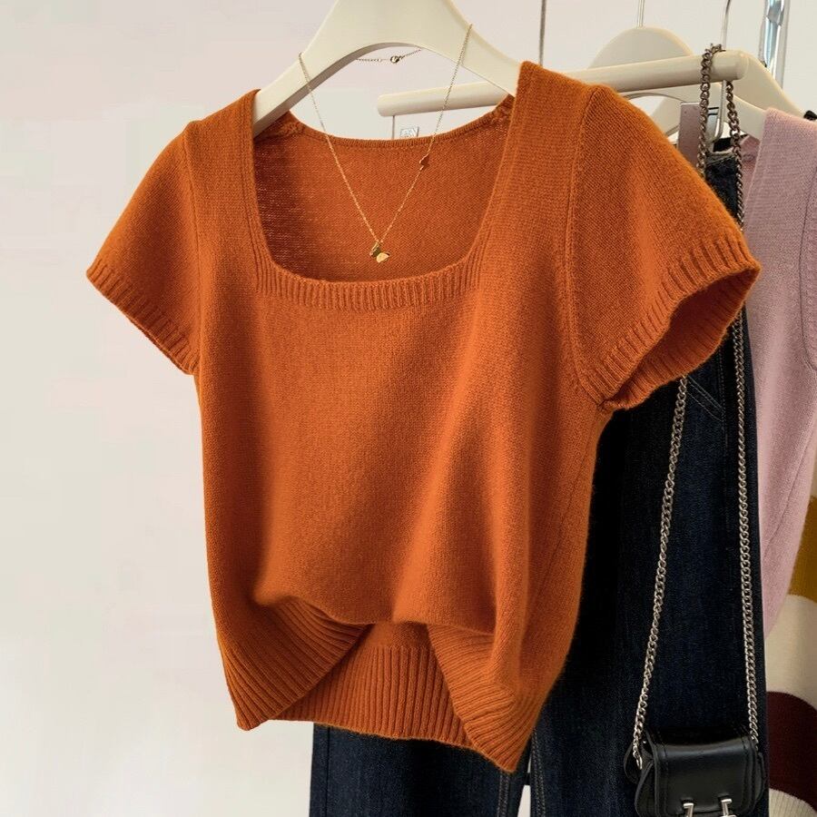 女性らしさを引き立てるスクエアネックの美シルエットサマーニット。