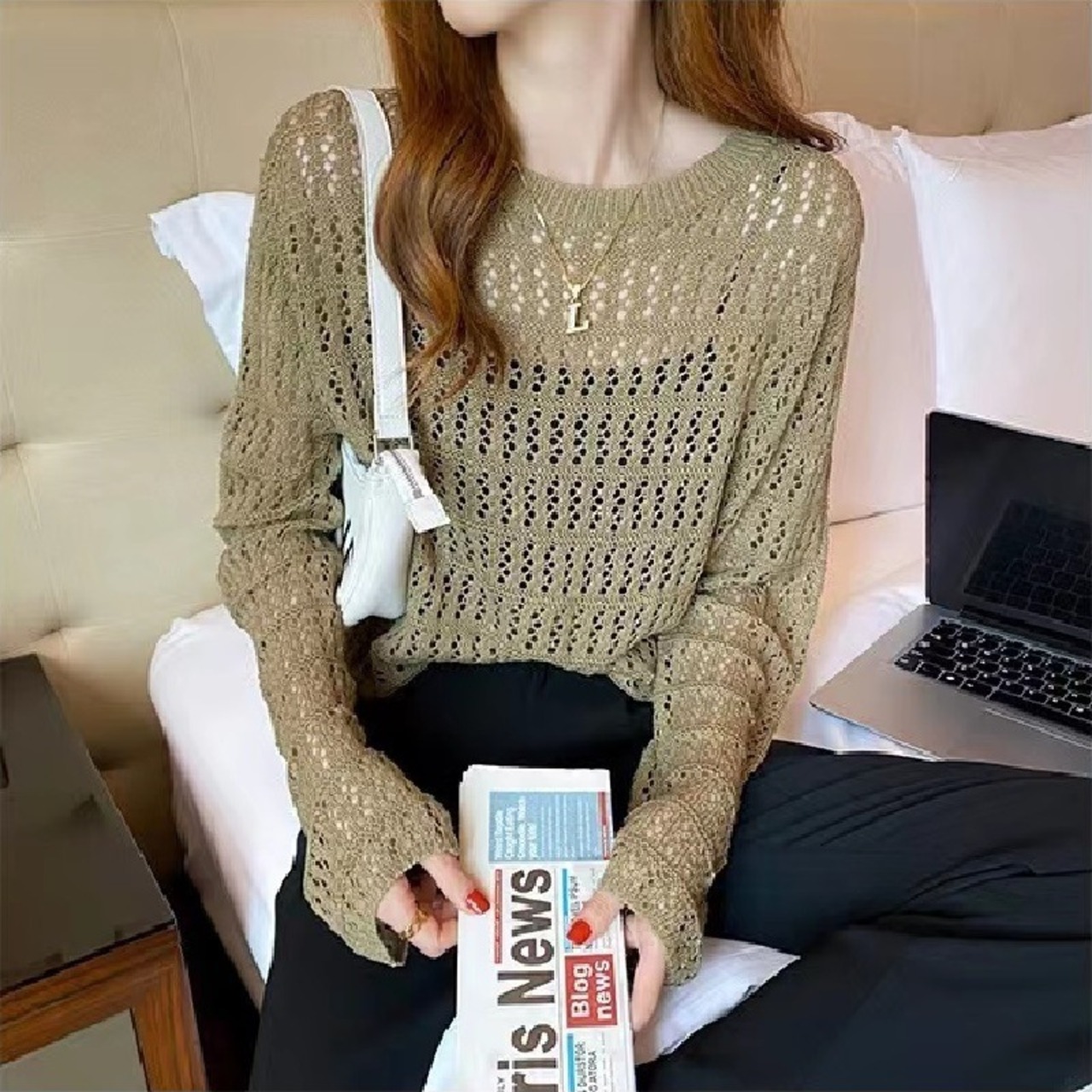 透かし編みと透け感があり、軽やかな印象を与えてくれます。