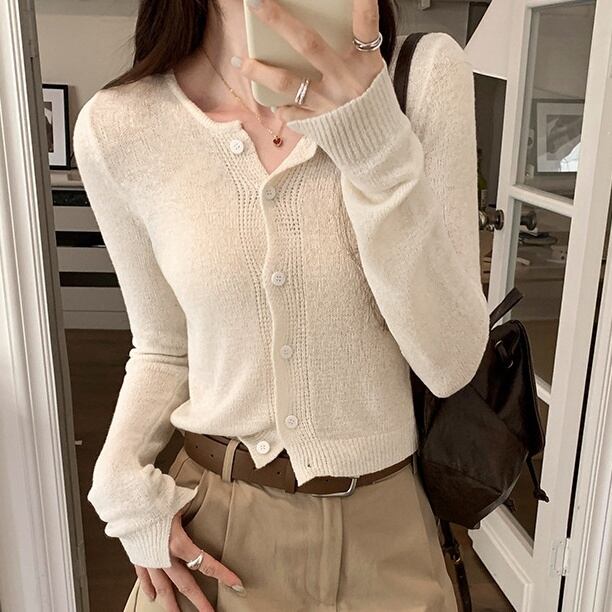 ショート丈のシルエットが絶妙で、透け感が春夏の装いに軽やかさをプラスします。