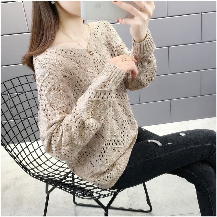 透かし編みのデザインが軽やかな印象を与え、萌え袖で可愛らしさをプラス!