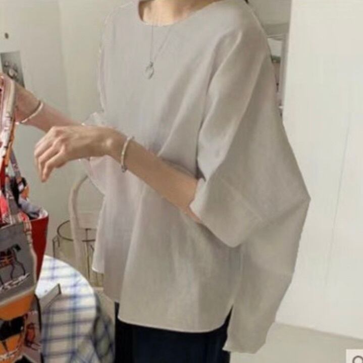 7分袖×コットンリネンミックスがこなれ感を演出。