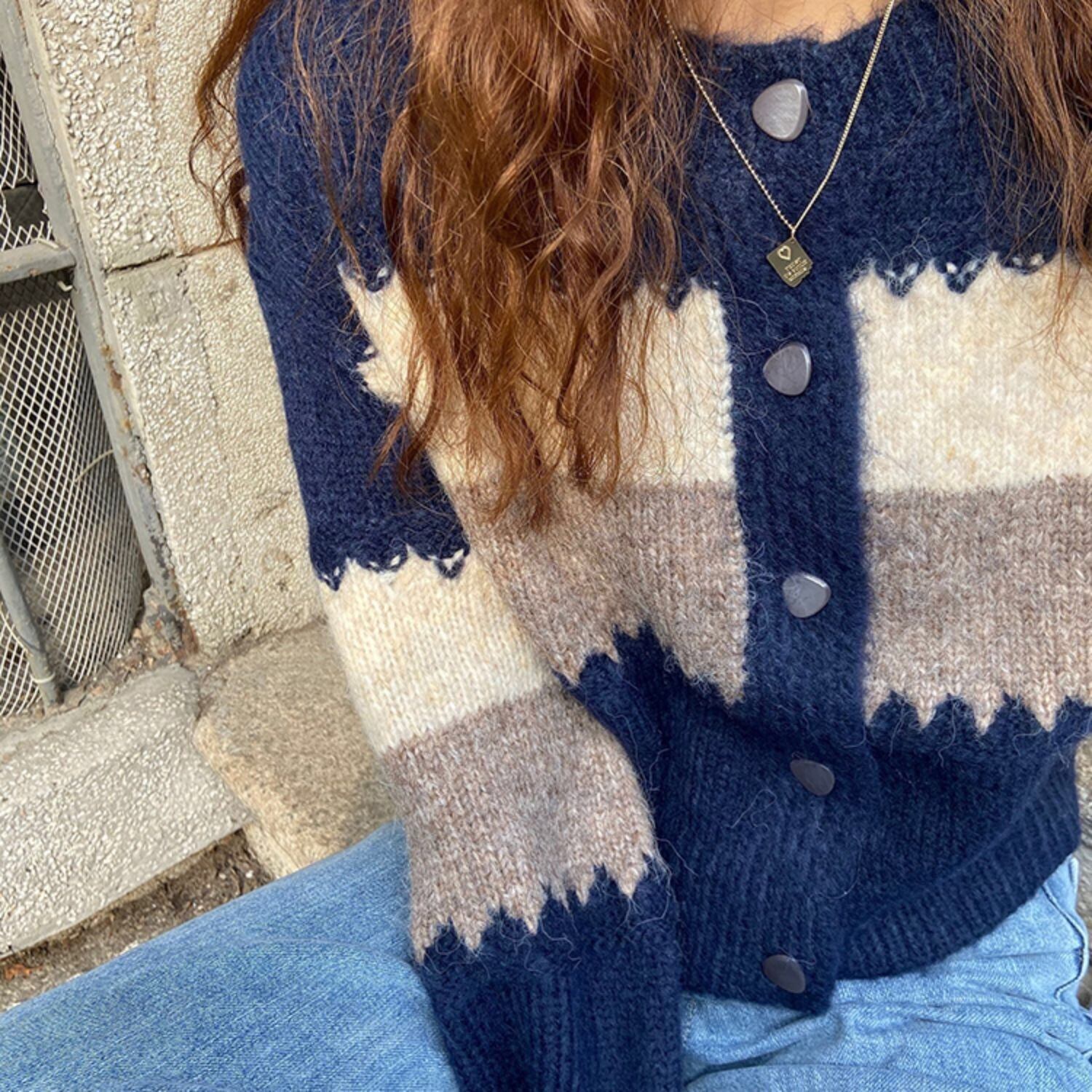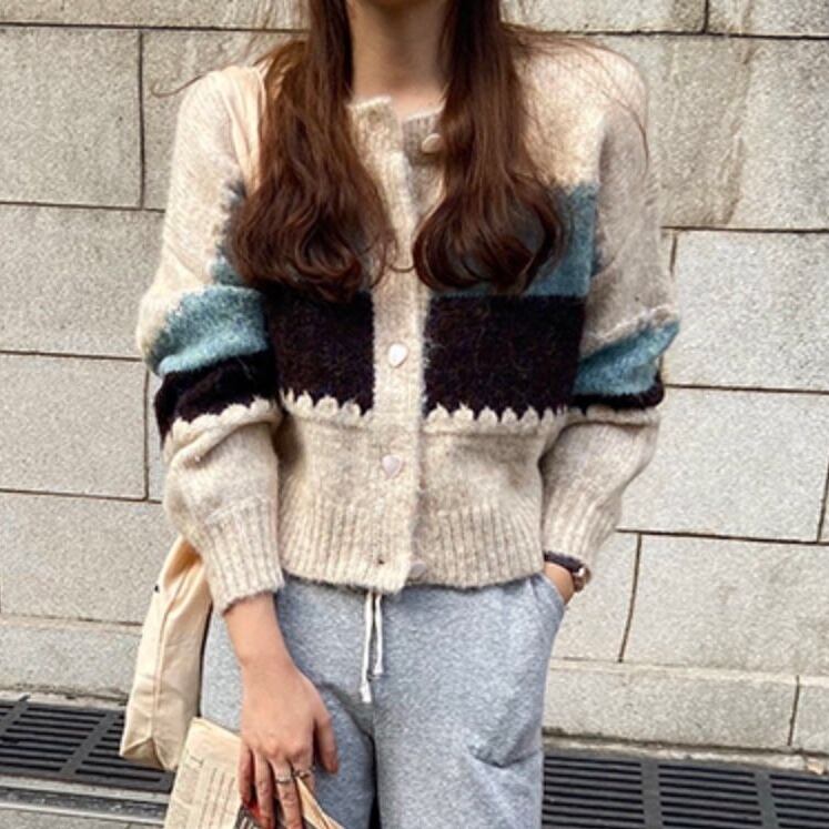 ふわふわとした質感が魅力的なこのカーディガンは、長袖のクルーネックデザインで、ミディアム丈が絶妙なバランスを提供します。