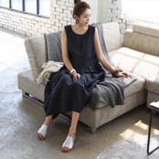 ノースリーブとゆったりとしたシルエットで