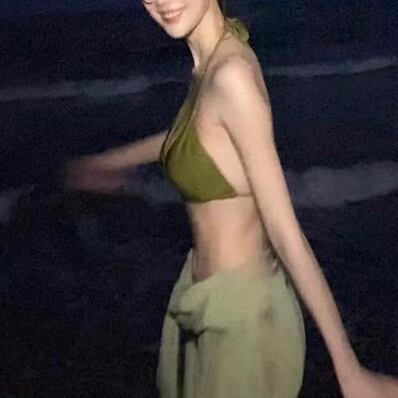 三角ビキニ×リボンの甘辛バランスで大人のモテ水着完成。