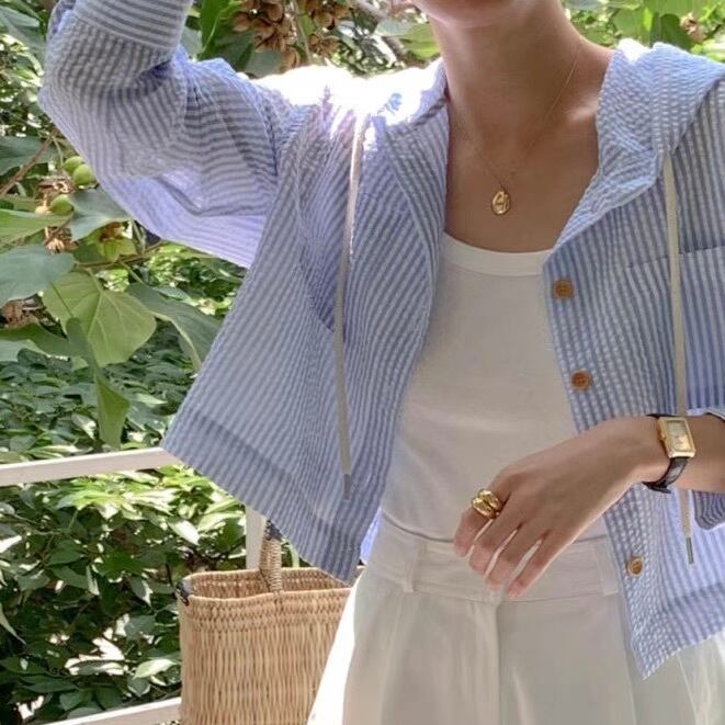 ショート丈×前開きでスタイルアップも叶える万能シルエット。