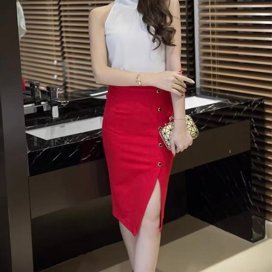 ハイウエスト×スリットで美脚&脚長効果も抜群。